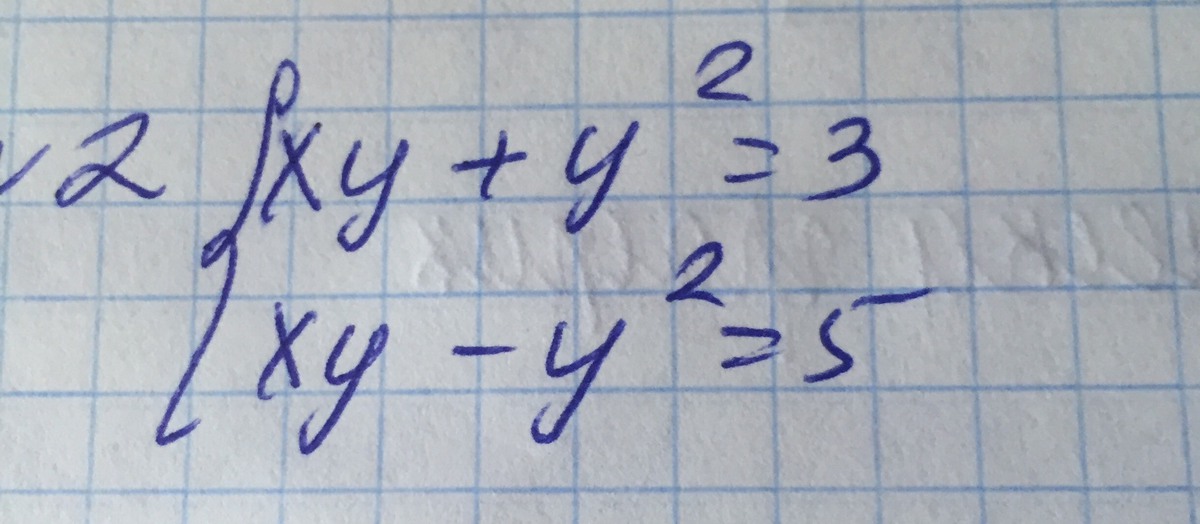 Из первого вычитаем второе уравнение. Получается: 2(y^2)=-2 потом y^2=-1 потом y=+-1 или y1=1 и y2=-1
