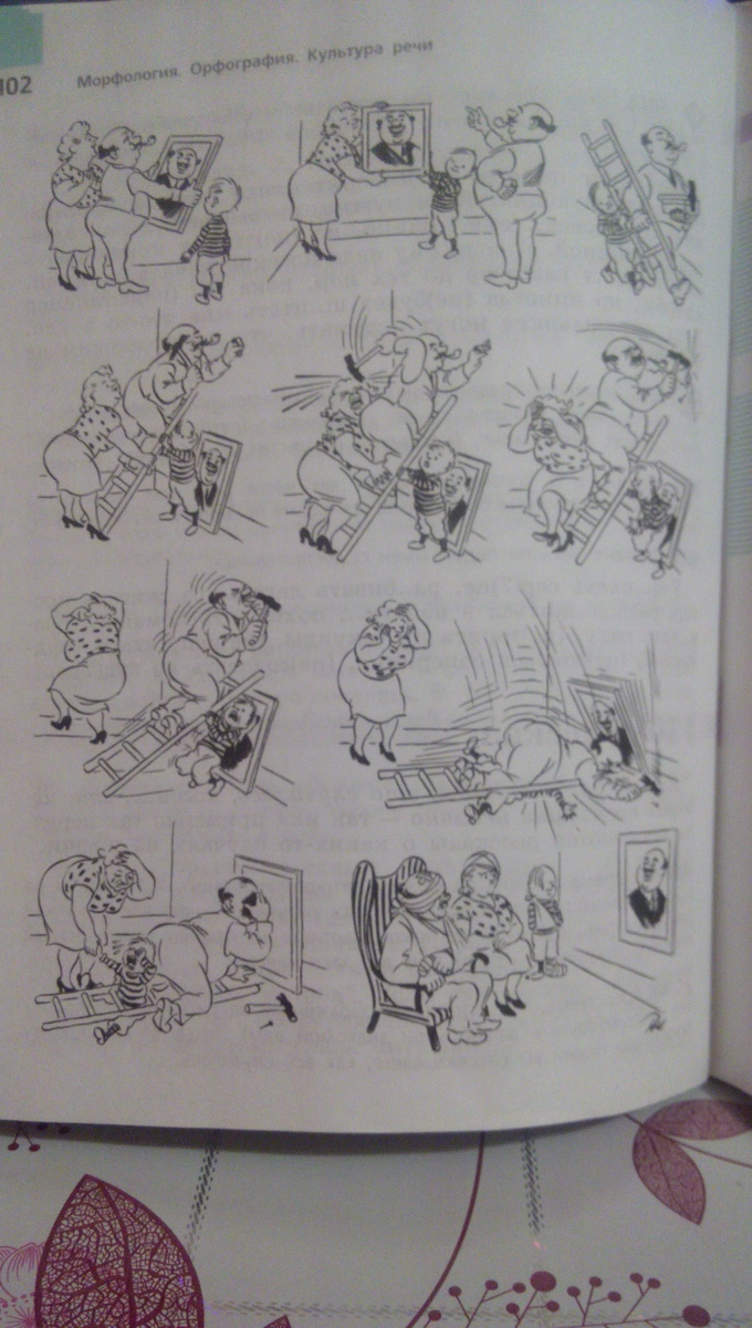 папа купил картину и хотел её повесить на стену и мама и сын держали лестницу но папа качался о стукнул себя мотлотком по пальцу мама пожла звонить доктору а сынок не удержал лестницу и папа упал на кратину но прешол врачь перемотал папе голову и повесил картину мама сказала как красиво