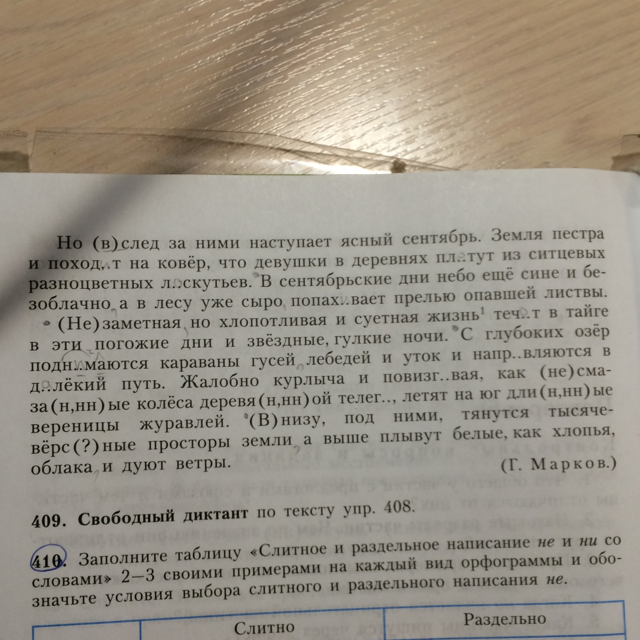2 абзац:Незаметная слитно,после этого слова запятая,течЕт,поднимаются,после гусей запятая,направляются,далекий,повизгивая,несмазанные,деревянной,телеги,длинные,внизу,тысячеверстные,после земли запятая,после "облака"запятая не нужна.