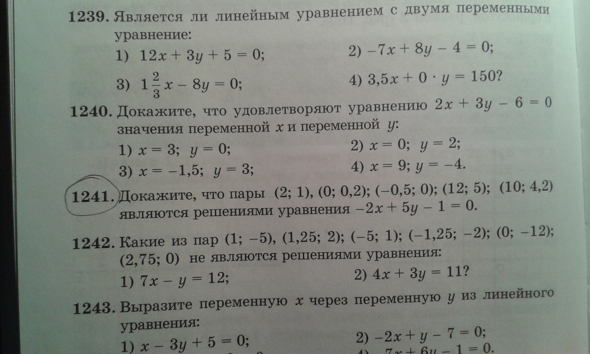 и уравнение -2х+5у-1=0 подставим: -2*2+5*1-1=-4+5-1=0