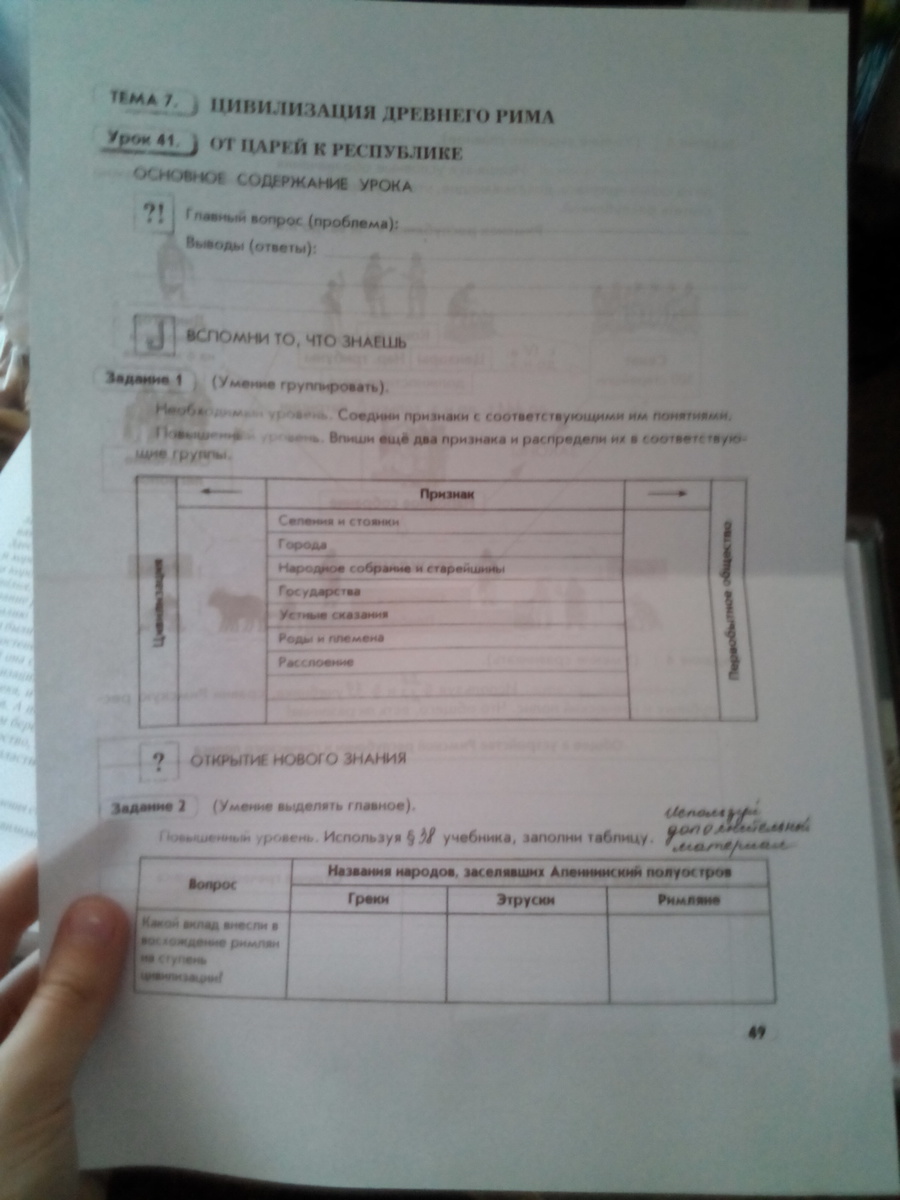 надо соединить признаки. слева цивилизация, а справа первобытная община
