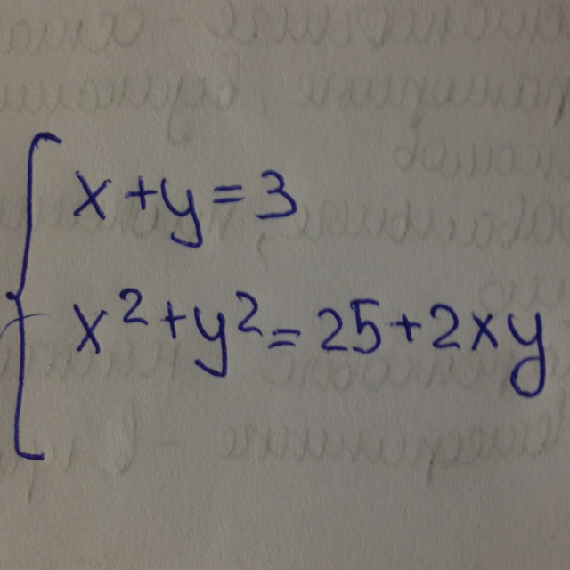 {x²+2xy+y²=9 {x+y=3 {y=3-x {y=3-x