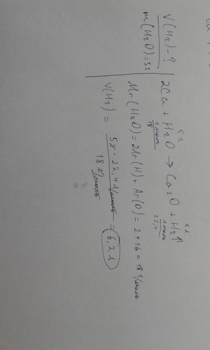 Рассчитайте объём водорода выделившегося в результате взаимодействия кальция с водой массой 5 г.