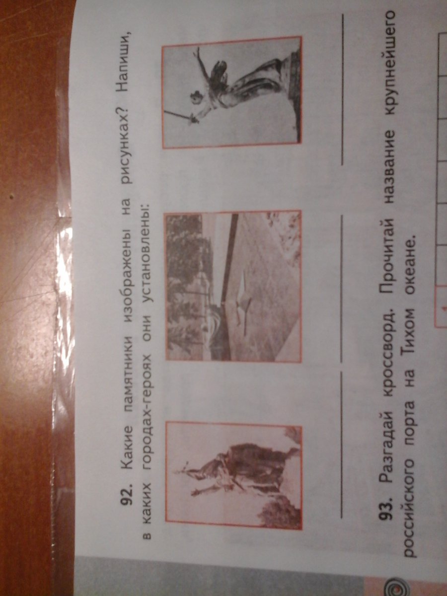 Какие памятники изображены на рисунках? Напиши в каких городах-героях они установлены: