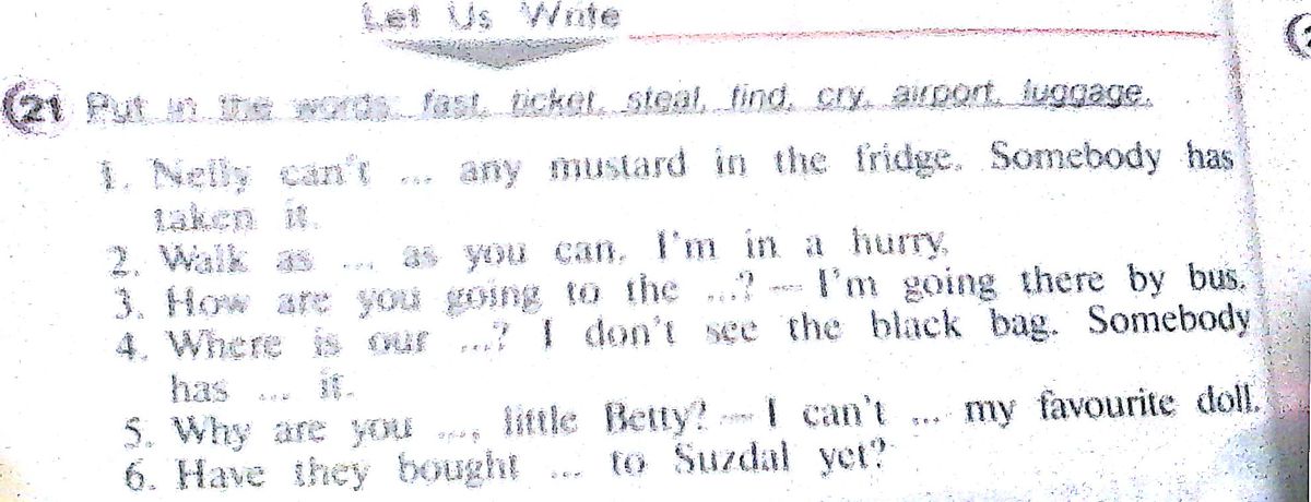 1)find 2)fast 3)airport 4)luggage,steal 5)cry,find 6)ticket
