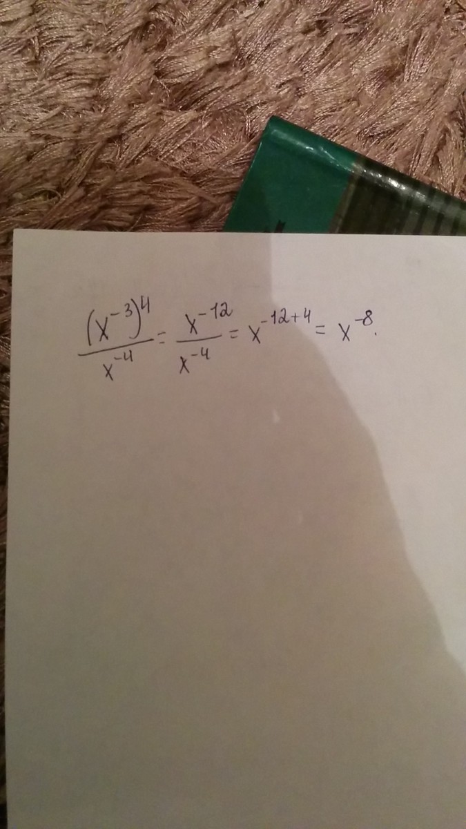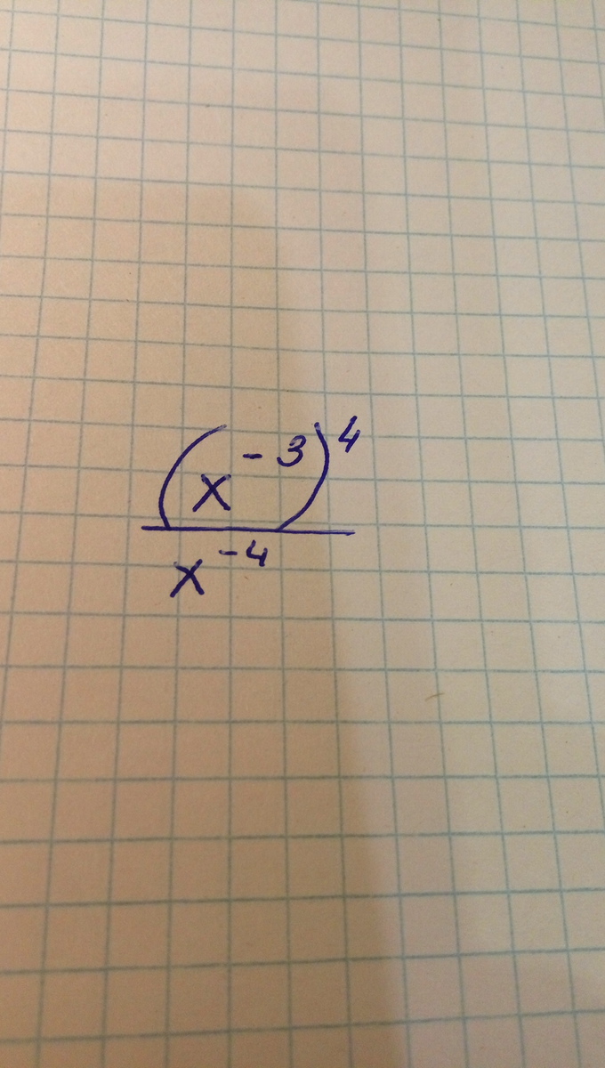 (x^-3)^4/x^-4=x^-12/x^-4=x^-8