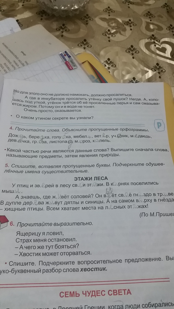 Березка, голубка, мебель,ученик, медведь, девочка.