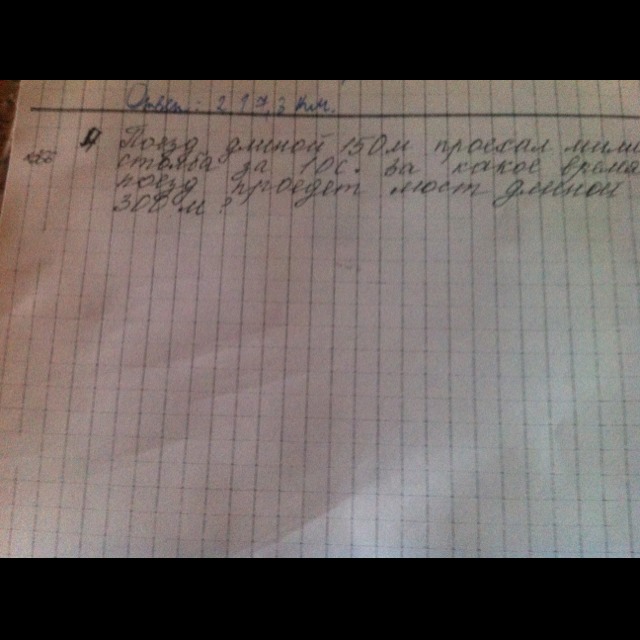 Если поезд 150м проехал за 10с,а 300м это 1/2 от 150м,а время 10с