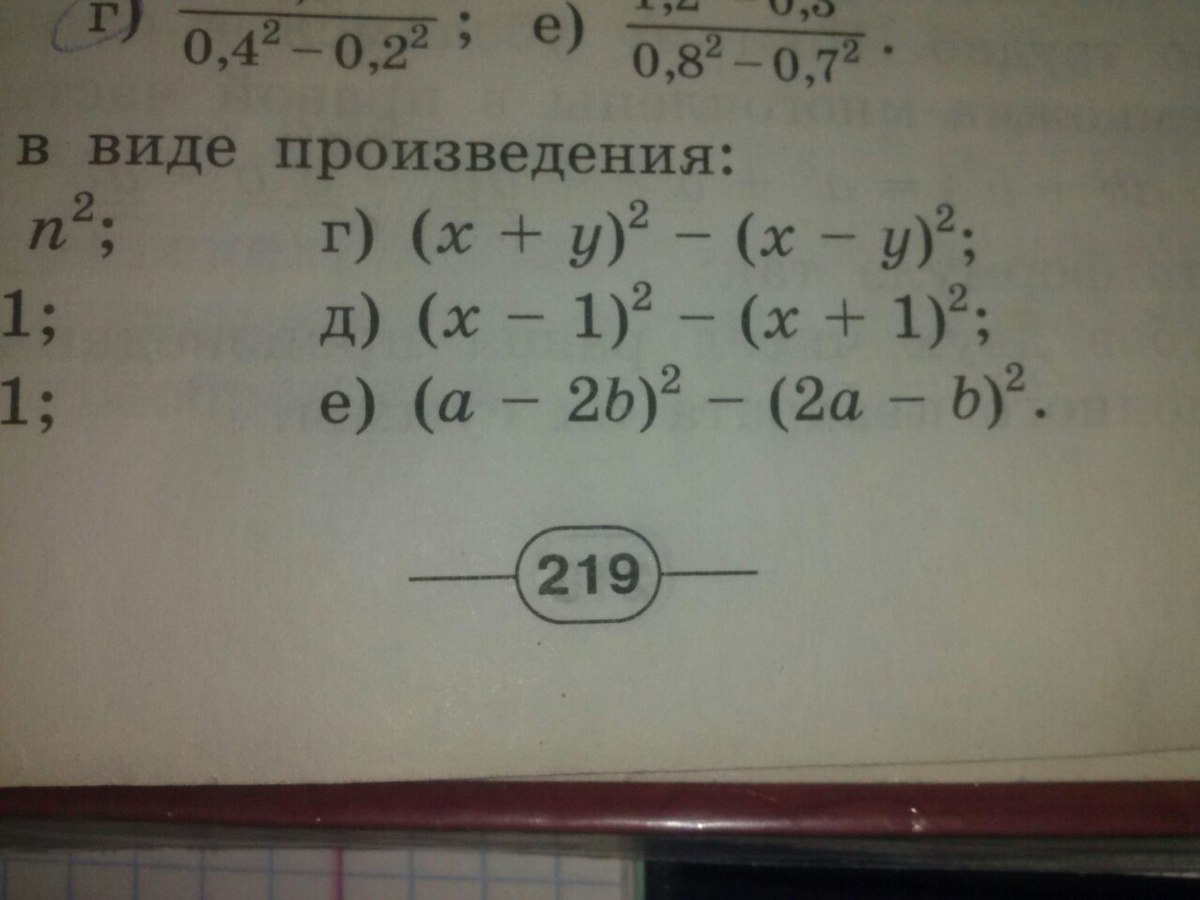 д) (x-1)^2-(x+1)^2=(x-1-x-1)(x-1+x+1)=-2*2x=-4x