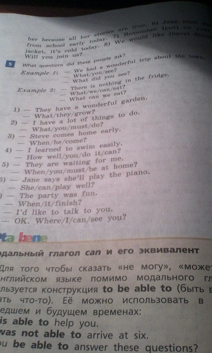 What questions did these people ask? 1)They have a wonderful garden 5)They are waiting for me What/they/grow? When/you/must/be at home?