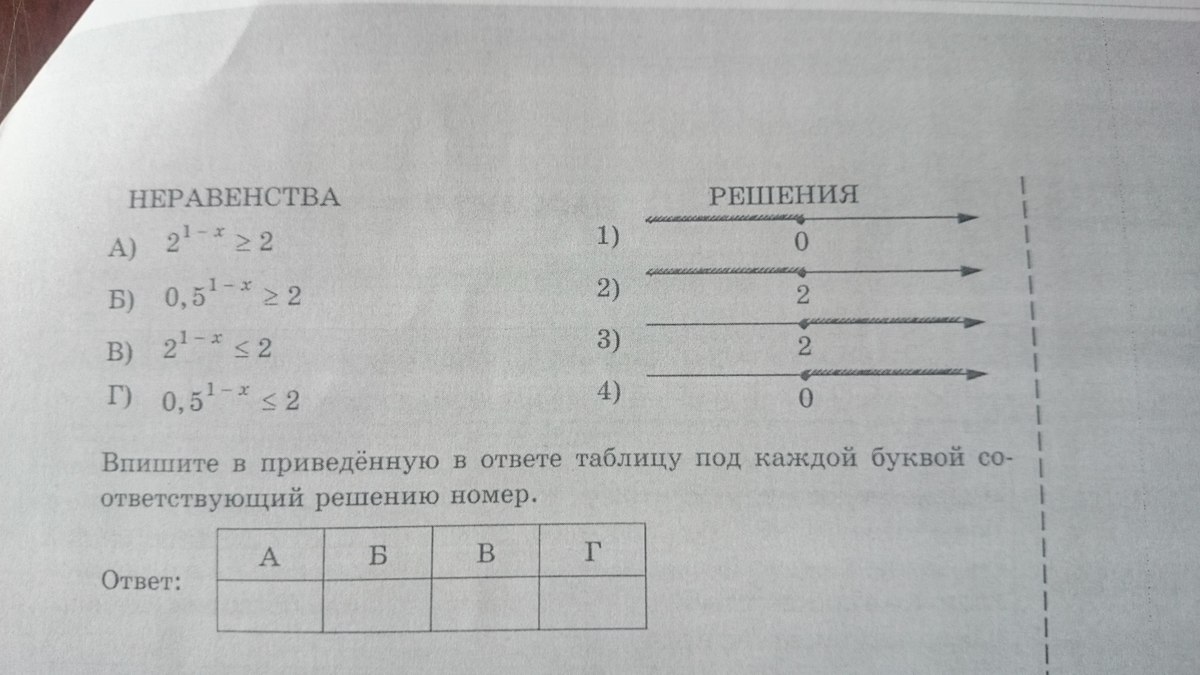 Каждому из четырех неравенств в левом столбце соответствует одно из решений в правом столбце. Установите соответствие между неравенствами и их решениями.