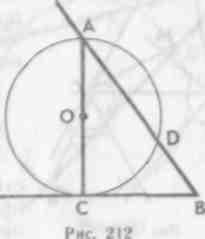 1. На рисунке изображена окружность с центром О, АС — диа¬метр, а ВС — касательная к этой окружности. На какие части от¬резок АВ делится точкой D, если AС=20см, ВС= 15см?