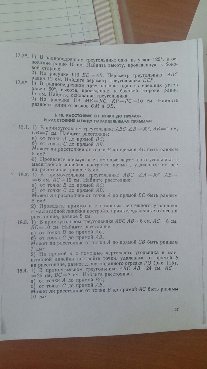 Расстояние есть перпендикуляр, т.к. треугольник прямоугольный, то расстояние и есть сторона..