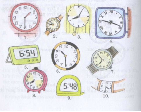 посматрите на картинку и напишите который час на английском (сделайте все часы )