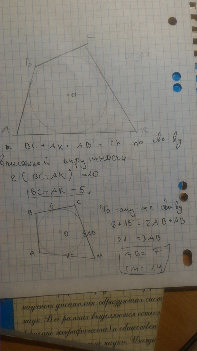 2)Дано: АВСМ описан около Окр.(О; r) BC = 6, AM = 15, СМ = 2 АВ Найти: АВ, СМ
