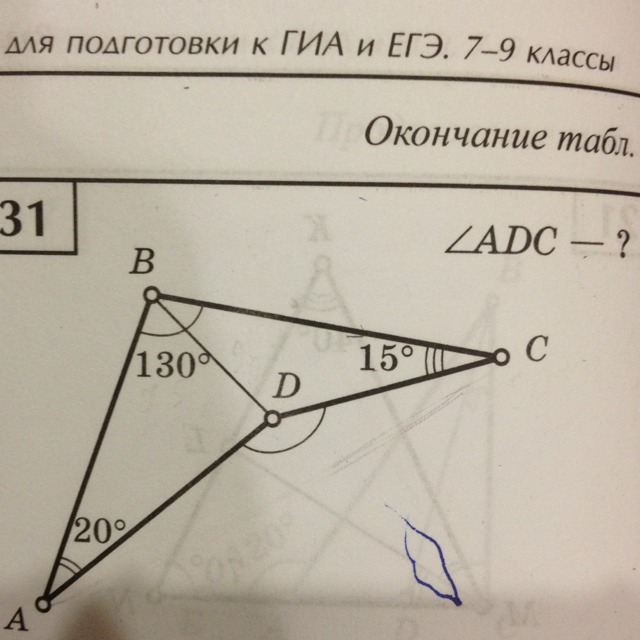 тогда из треугольника ADC следует что угол ADC=180-15=165 градусов.
