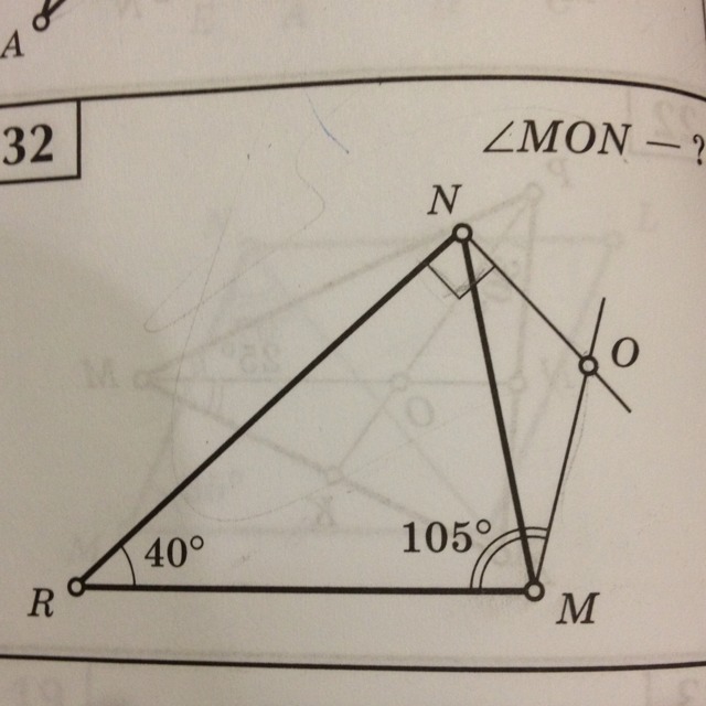 сумма выпуклого четырехугольника равна 360 грудусов тогда угол NOM=360-90-40-105=125 грудусов.