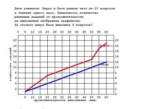 т.к. между 8 и 10 нужно провести невидимую линию вправо. (по половине квадратика) и когда мы дойдем до точки где красный цвет увидим, сколько потратили минут на 9 заданий