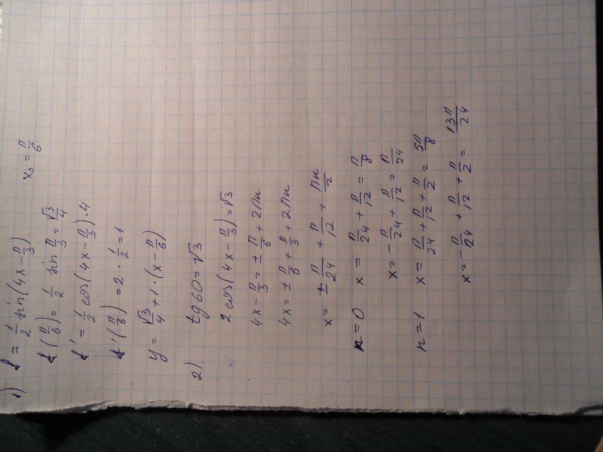Дана функция f(x)= 12sin (4x - п3). Составить уравнение касательной к графику в точке с абсциссой x = п6.