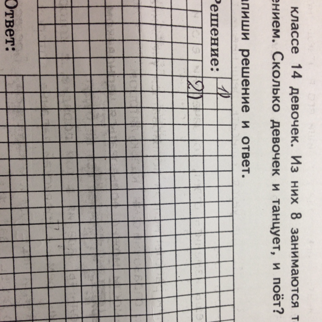 2) 17-14=3 девочки и танцуют, и поют.