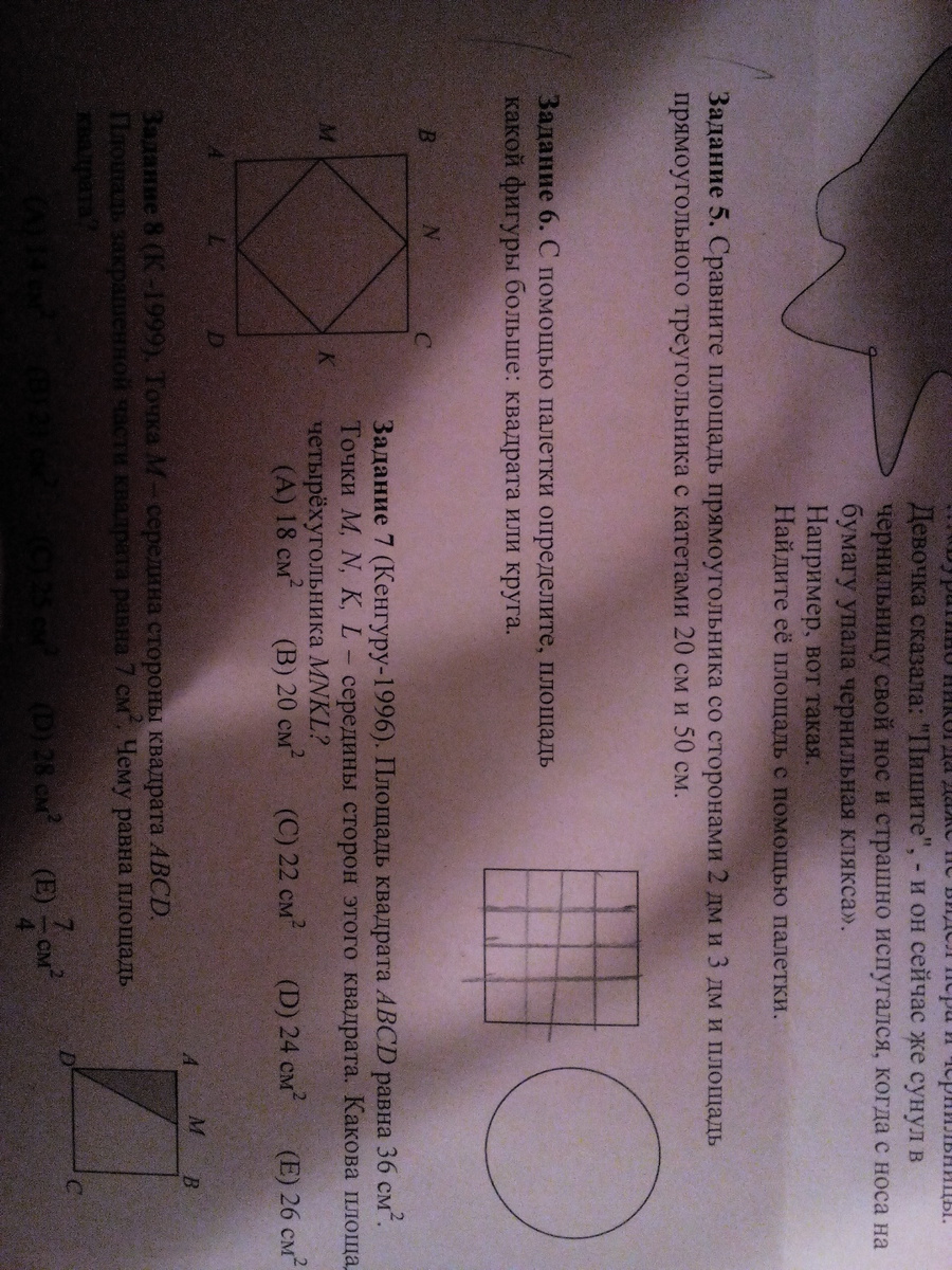 6-5=1дм2 - на столько площадь прямоугольника больше за площадь треугольника