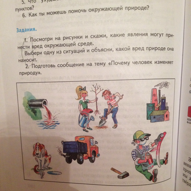 Возьмём загрязнение воды-она вридит вмем кто живёт под водой.