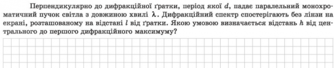 dsinφ=kλ, k=1, для малих кутів sinφ=tgφ=h/l, тоді dh/l=λ, h=lλ/d.