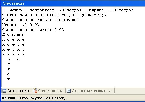 Составить программу, которая выделяет отдельные слова и числа из введенной