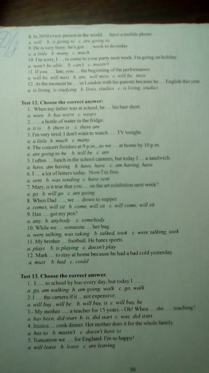TEST 12_1) a 2) b 3) b 4) a 5) b 6) C 7) b 8) a 9) C 10) a 11) C 12) b