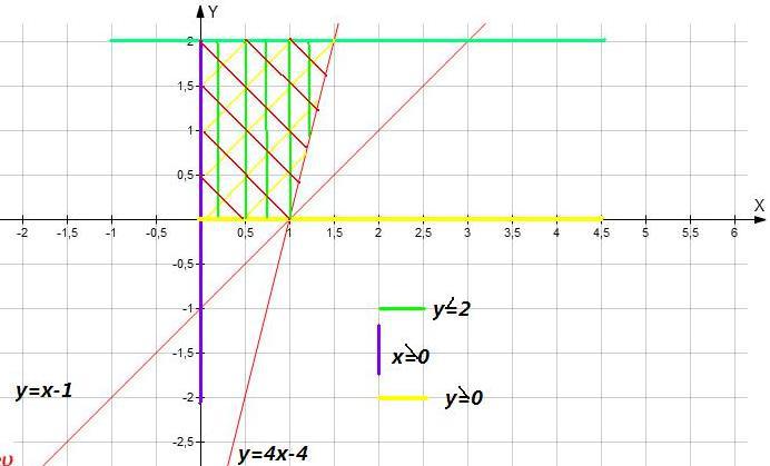 решение системы неравенств выражено заштрихованной областью, ограниченной графиками функций, причем все значения (включая все линии заштрихованной области) принадлежат области решения, так как неравенства заданы в виде ≥ и ≤, т.е значения "равно" тоже входят