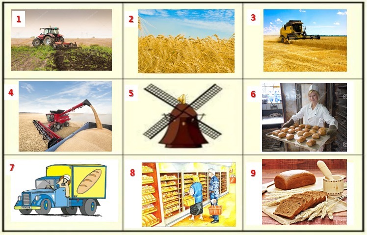 Затем в поля выходят сеялки, и зерно попадает в землю.Когда колосья становятся золотыми, на поля выходят комбайны. Комбайнёры срезают колосья и вымолачивают из них зёрна, и на поля приезжают большие грузовые машины, в которые зерно сыплется по длинному рукаву.