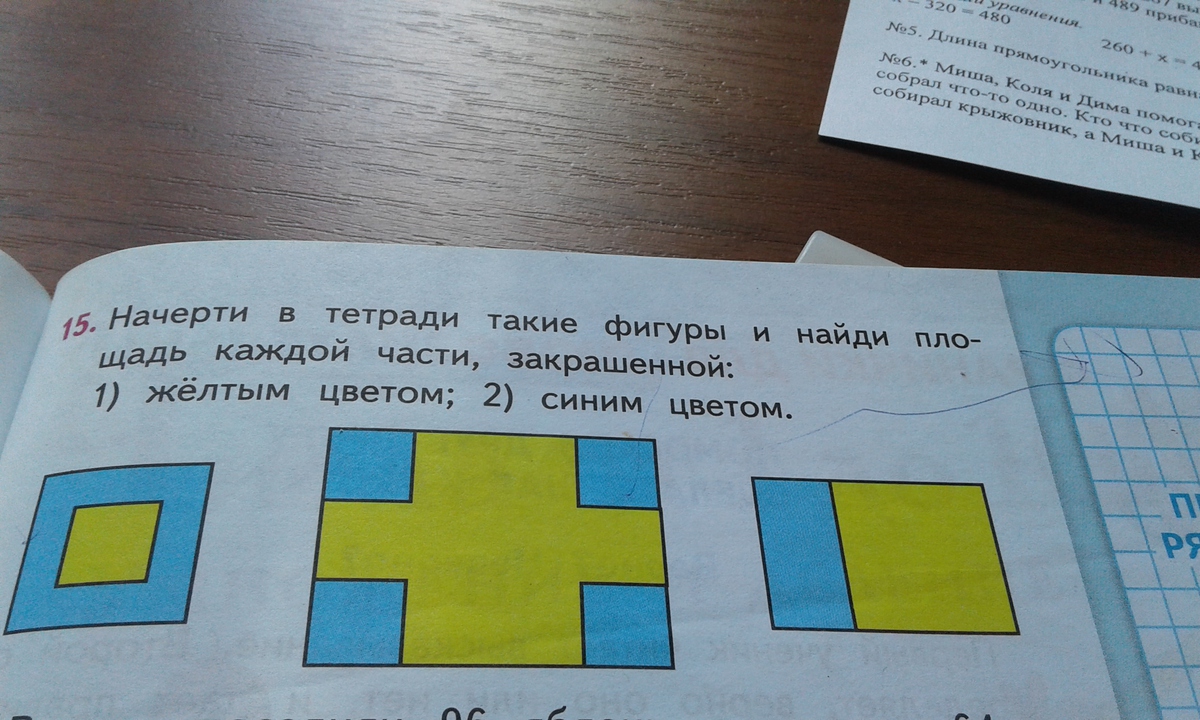 Ответ : просто на рисуй эти фигуры и найди полощедь желтым цветом квадраик и площадь синим цветом