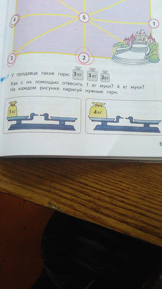 у продавца такие гири 3 килограмма, 3 килограмма ,2 килограмм как с их помощью отвесить 1 килограмм муки и 4 килограмма муки