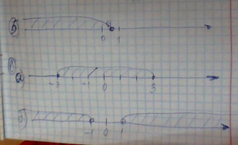 б) |x|>1, x<-1, x>1 На объединении промежутков x∈(-∞; -1)∪(1; +1)