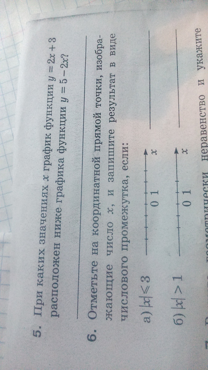 5) 2x+3=5-2x, найдем координаты точки пересечения графиков: