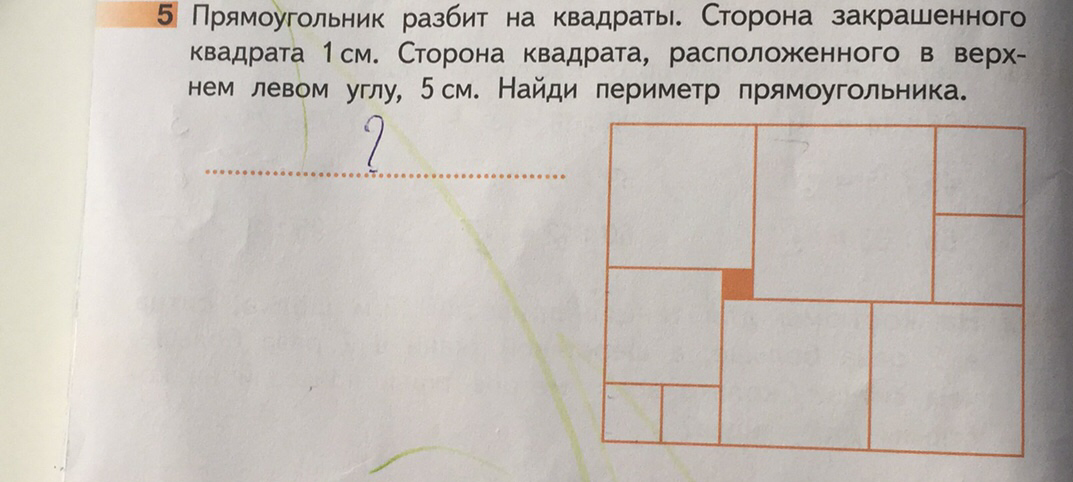 И Прямо-Угольник разбит на квадраты Сторона закрашенною квадрата Сторона квадрата расположенного в нем левом углу Найди периметр прямоугольника . / .