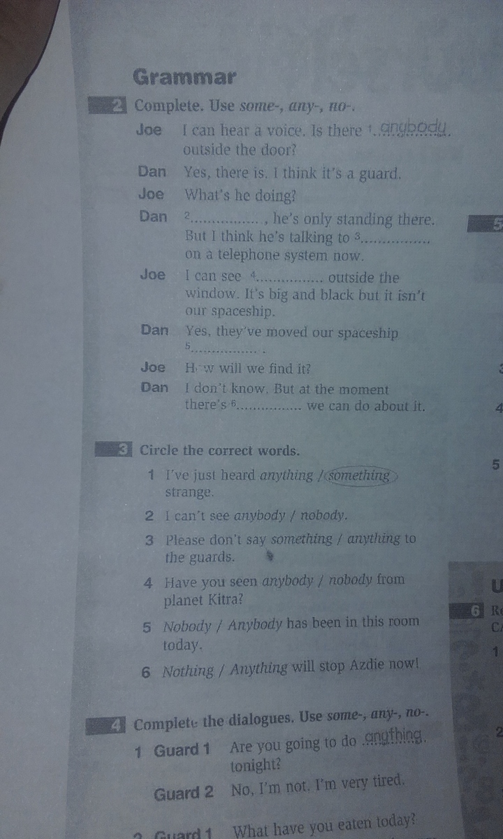 3. 2). anybody; 3). anything; 4). anybody; 5). Nobody; 6). Nothing.
