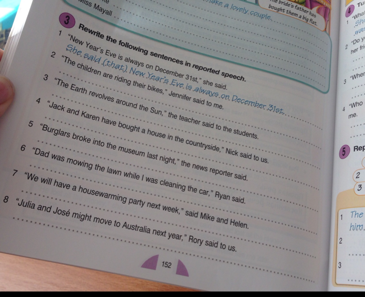 3 The teacher said that the Earth revolves around the Sun.