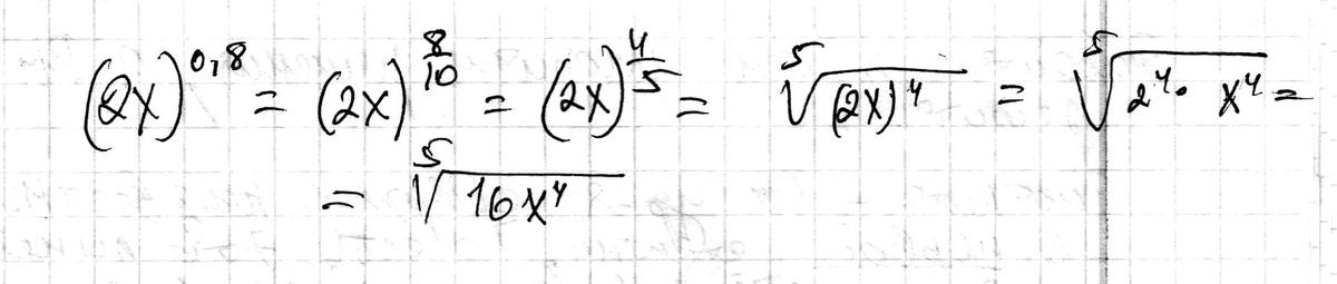 в виде корня получается так:^10√2x^8(десять корней из двух икс в восьмой степени)