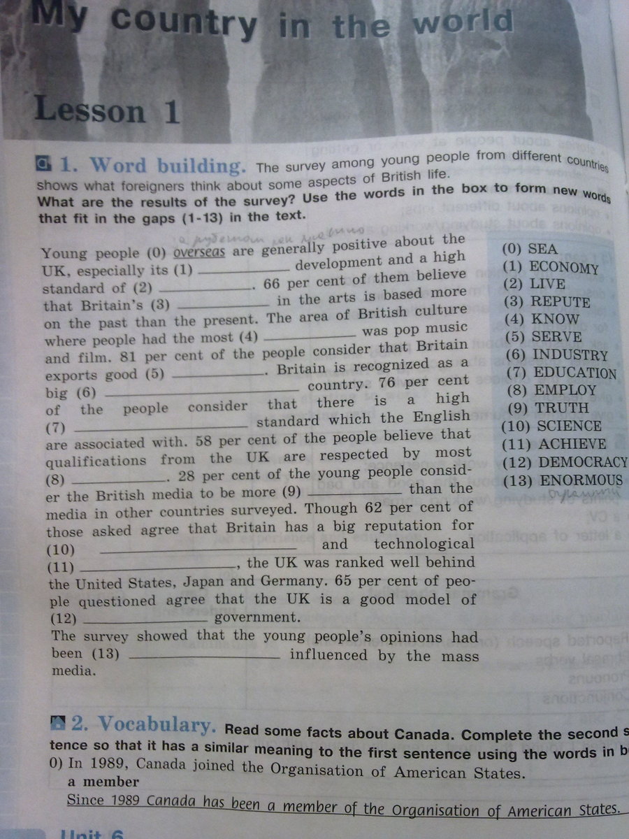 Young people overseas are generally positive about the UK, especially its economical development and a high standart of living. 66 per cent of them believe that Britain's reputation in the arts is based more on the past than the present. The area of British culture where people had the most knowledge was pop music and film. 81 per cent of the people consider that Britain exports good services. Britain is recognized as a big industrial country. 76 per cent of the people consider that there is a high educational standart which the English are associated with. 58 per cent of the people believe that qualifications from the UK are respected by most employees. 28 per cent of the young people consider the British media to be more truthful than the media in other countries surveyed. Though 62 per cent of those asked agree that Britain has a big reputation for scientific and technological achievements, the UK was ranked well behind the United States, Japan and Germany. 65 per cent of people questioned agree that the UK is a good model of democratical government.