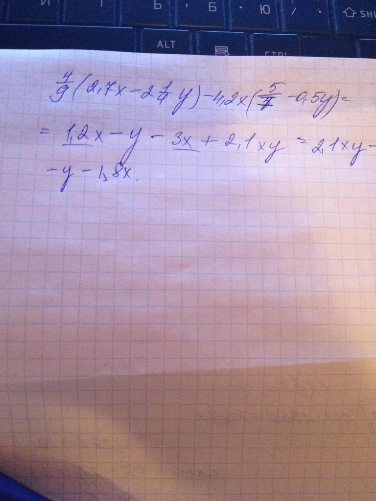 помогте пожалуйста решить задание и зараниее спс! четыре девятых (2,7х - две целых одна четвёртая y)-4,2х(пять х- 0,5у)