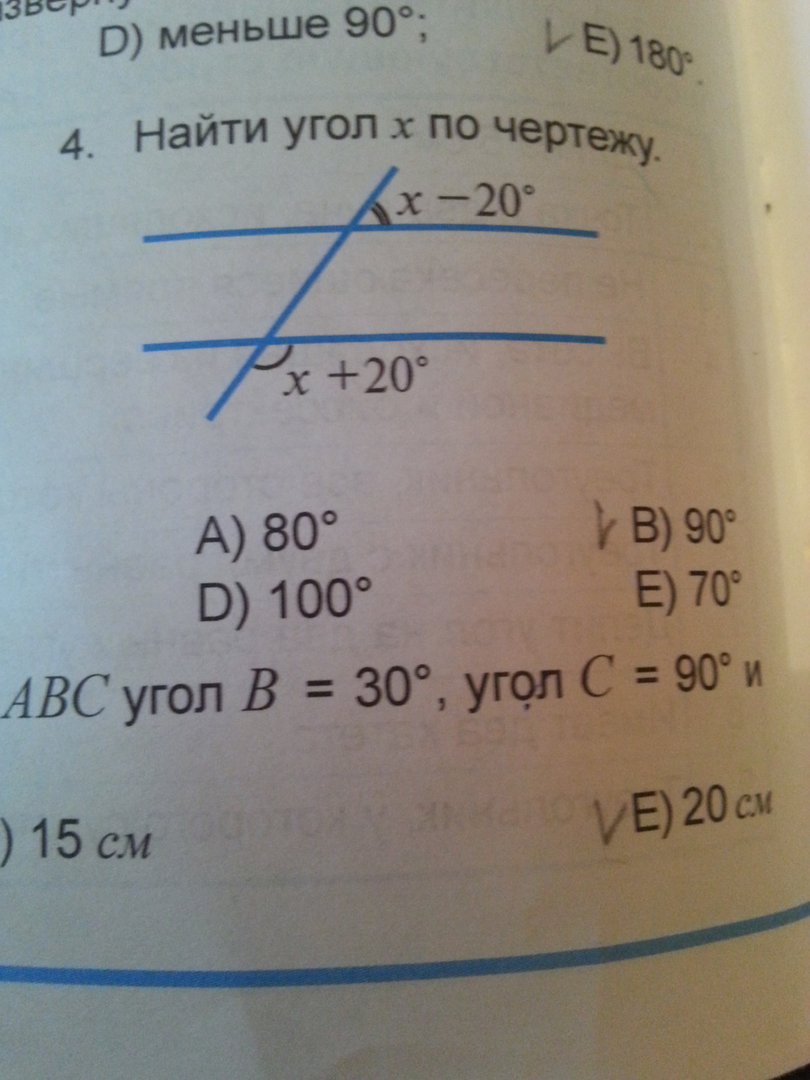 угол х-20 и угол х+20 равны, значит
