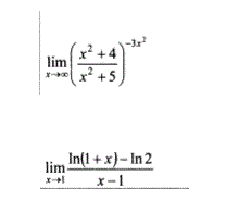 lim_{x to infty} ( frac{x^2+4}{x^2+5})^{-3x^2}={1^{-infty}}= lim_{x to infty} ( frac{x^2+5-1}{x^2+5}  )^{-3x^2}=\ = lim_{x to infty} (1+ frac{-1}{x^2+5} )^{-3x^2}= lim_{x to infty} (1+ frac{-1}{x^2+5} )^{-3x^2cdot frac{-1}{x^2+5}cdot frac{x^2+5}{-1}  }=\ = e^{ lim_{x to infty}  frac{3x^2}{x^2+5}}=e^3