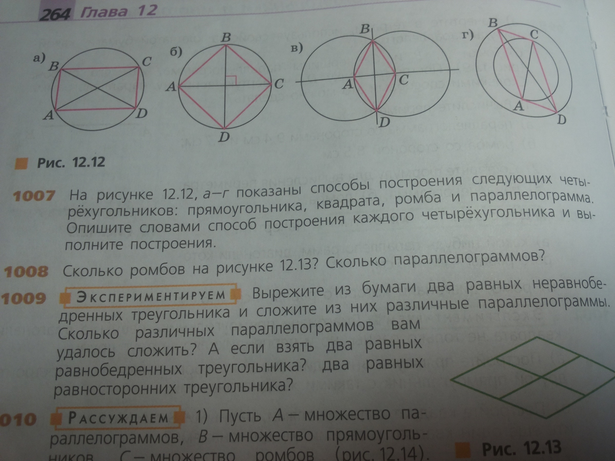 а) 1.рисуем с помощью цыркуля - круг 2.чертим на кругу точки ( D,C,A,D) и соединяем их через центр 3. ну и точки соединяем, и у нас получился прямоугольник