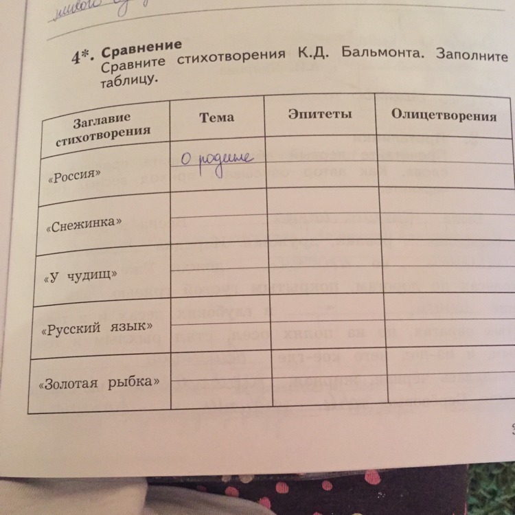 Сравните стихотворения К.Д .Бальмонта .Заполните таблицу.