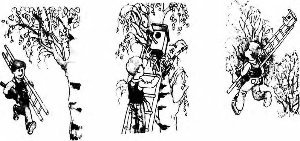Cаша решил поработать.После поисков он нашёл молоток,пару гвоздей и не много досок.Из досок он собрал скворечник.Саша подумал , что если поставить скворечник низко то его сломают плохие мальчишки и решил попросить у папы лестницу.Он прислонил её к дереву,поднялся и начал забивать гвоздём скворечник.Саша не увидел,что забивает скворечник к лестнице и ушёл,не замечая того что на лестнице скворечник. я старался напишите как вам.