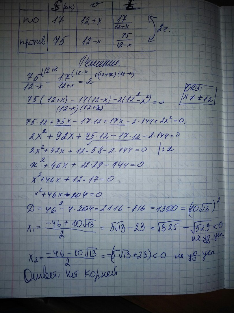 Теплоход прошел 17 км по течению реки,на 2 часа быстрее,чем 75 км против течения