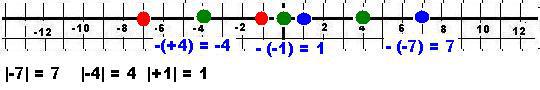 Отметьте на числовой прямой точки, соответствующие числам -1; 4; -7; 0. Отметьте точки , соответствующие числам,противоположным указанным. Найдите модули каждого из этих чисел.
