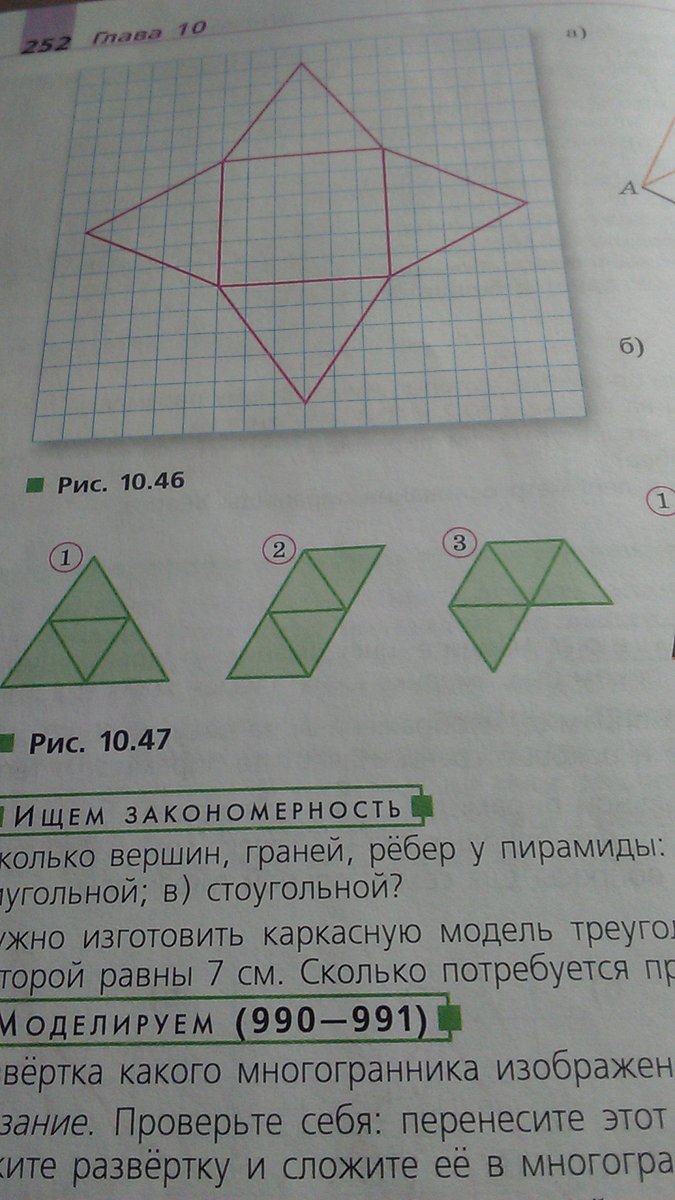 являются ли развертками треугольной пирамиды многоугольники, изображённые на рисунке 10.47