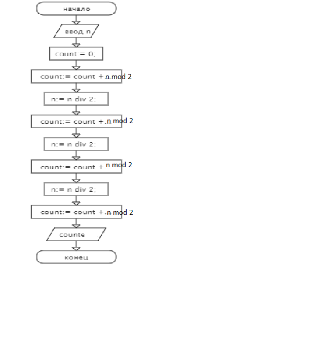 2Дано натуральное число меньше 16. Посчитать количество его единичных битов. Например, если дано число 9, запись которого в двоичной системе счисления равна 10012 (подстрочная цифра 2 справа от числа означает, что оно записано в двоичной системе счисления), то количество его единичных битов равно 2.